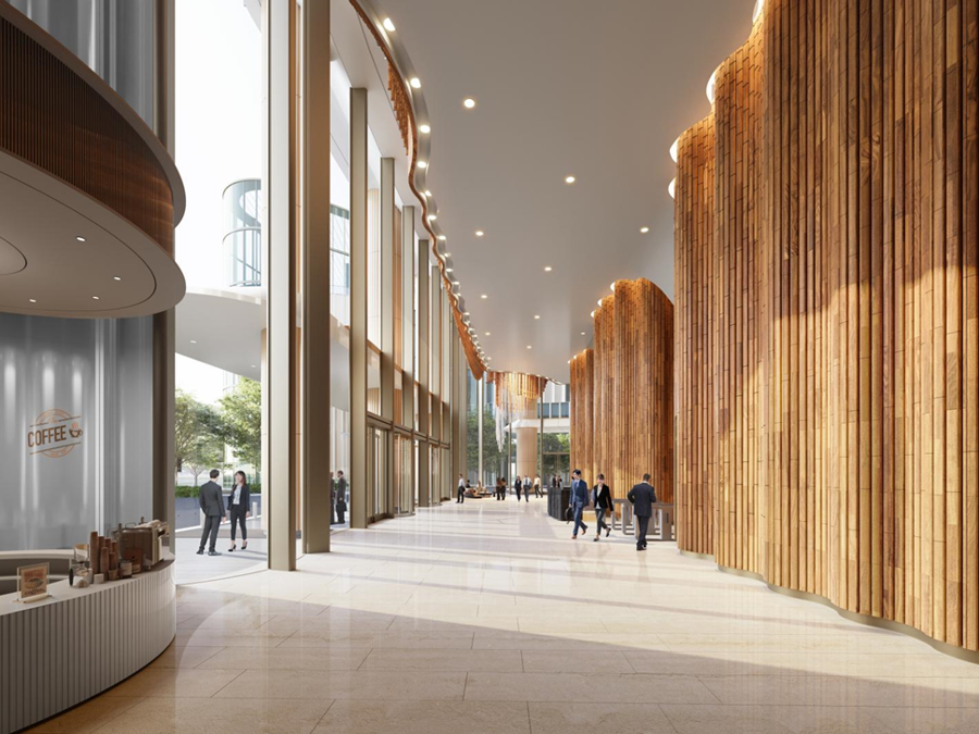前滩广场按照国际标准精心打造。两座办公楼均已斩获LEED和WELL双铂金级预认证,精准响应入驻企业对具备行业领先ESG资质绿色办公空间的需求。在技术应用层面,两座办公楼配备专属能源中心(实现低碳控温)、高标准室内空气质量(IAQ)过滤监测系统,以及屋顶并网光伏板等前沿创新技术。